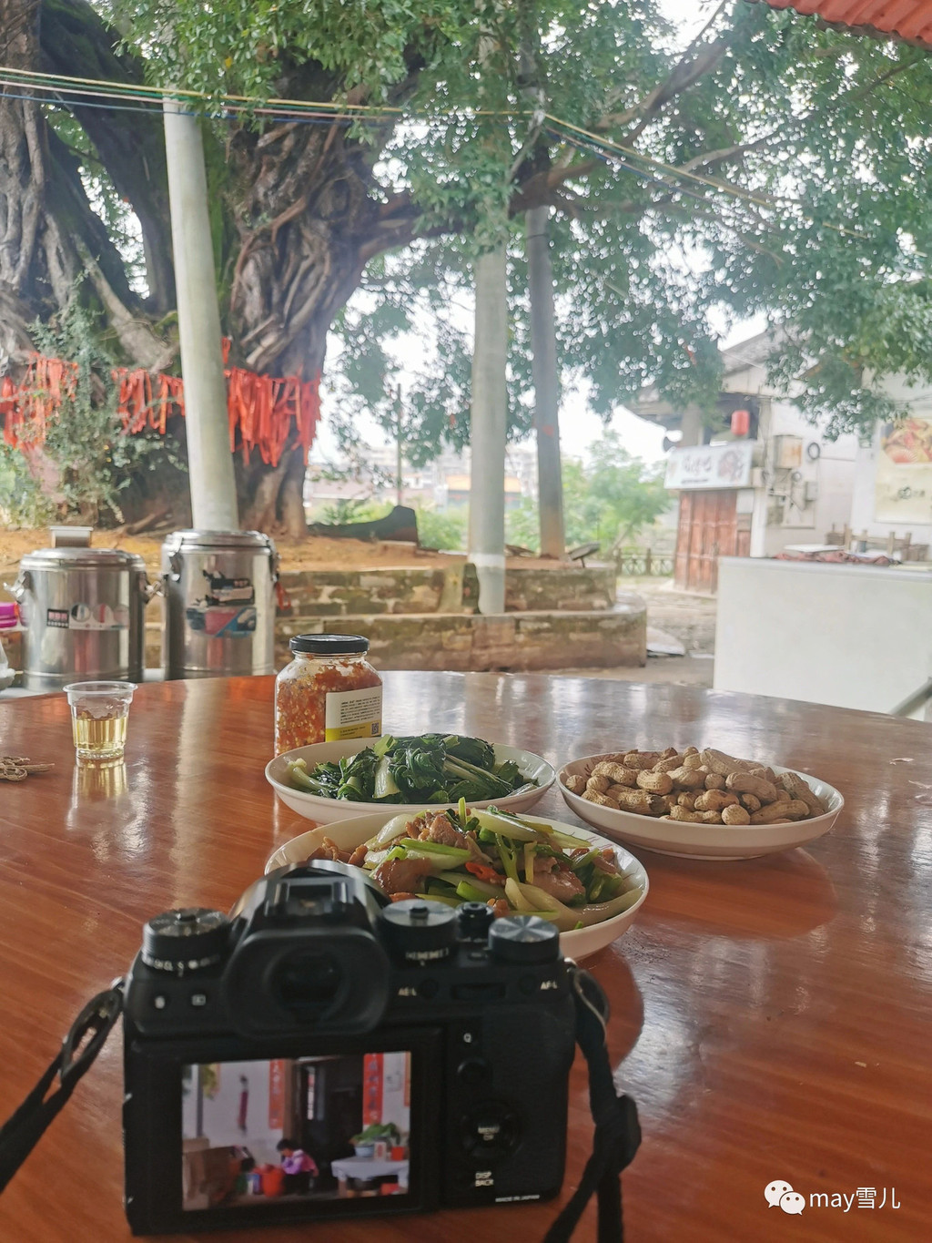 古巷有一棵老榕树,树旁一家饭店,饭店大娘招呼着我们。大娘说她姓邹,一家三口靠饭店营生,饭店就是自家的房子,已经好多年了。大娘说,大树底下好乘凉呢。