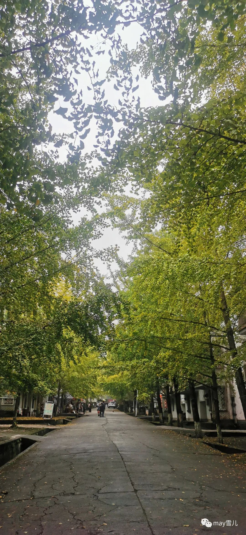 来的时间还是早了一点,抬头放眼望去,大道两旁,那青绿的颜色在细雨中,一度让人恍若置身于春韵里,只是低头凝眸,那飘落满地的黄叶,才惊觉,噢,这已是深秋了。
