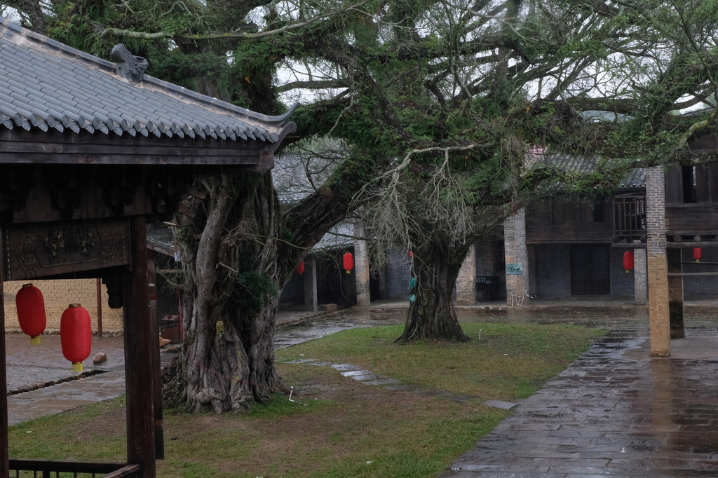戏台前方,是那沧桑的古榕,不知已历经过几度风雨,蹉跎了几多年月。