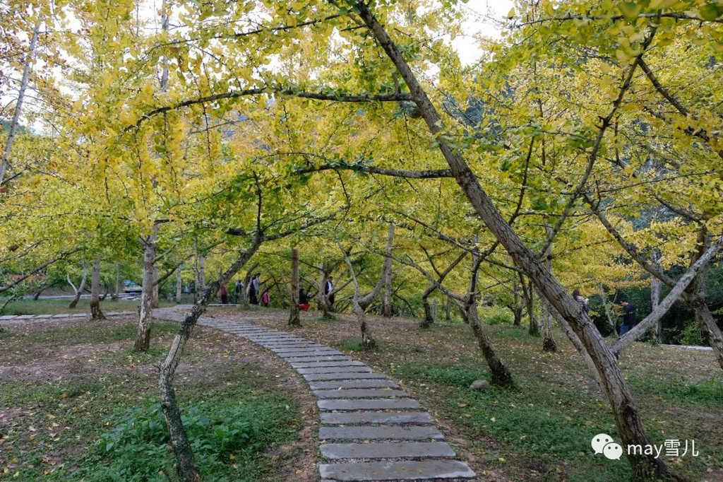 相比大道,这里的叶子黄得早一些,景区修筑了步道,蜿蜒在丛林之中。
