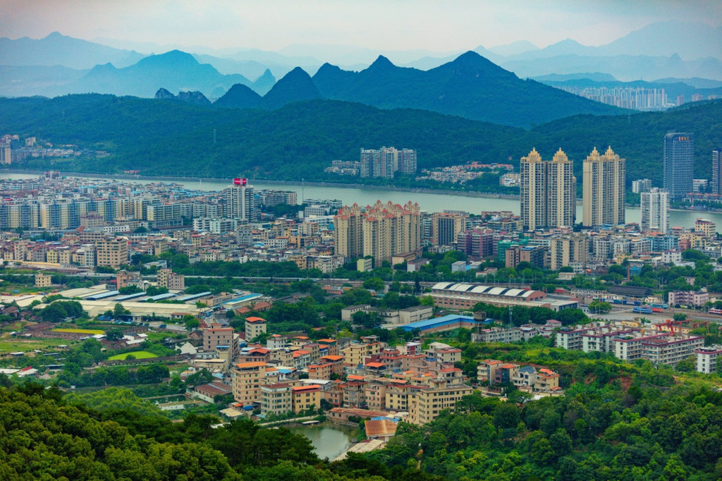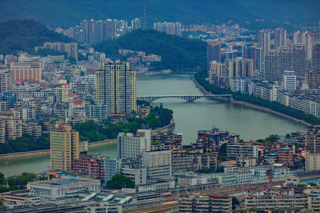 韶阳楼是整个 韶关 市的制高点,在顶层俯瞰 韶关 的 三江 六岸,风景尽收眼底。浈江和武江汇流成北江,两岸的现代化建筑错落有致,一时间竟有些恍惚,感觉像是去到了山城 重庆 。