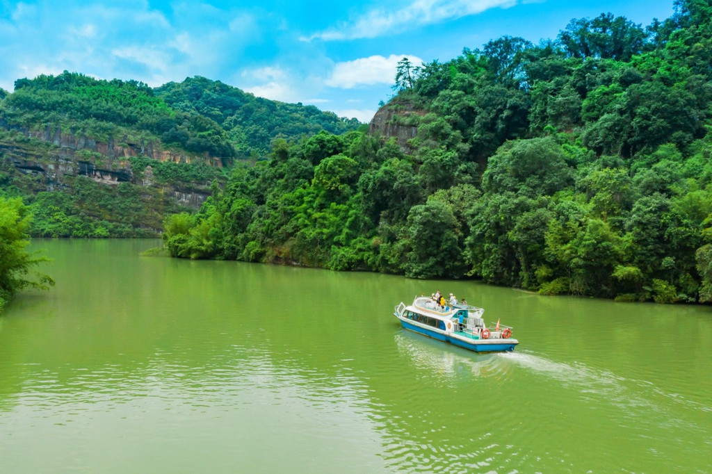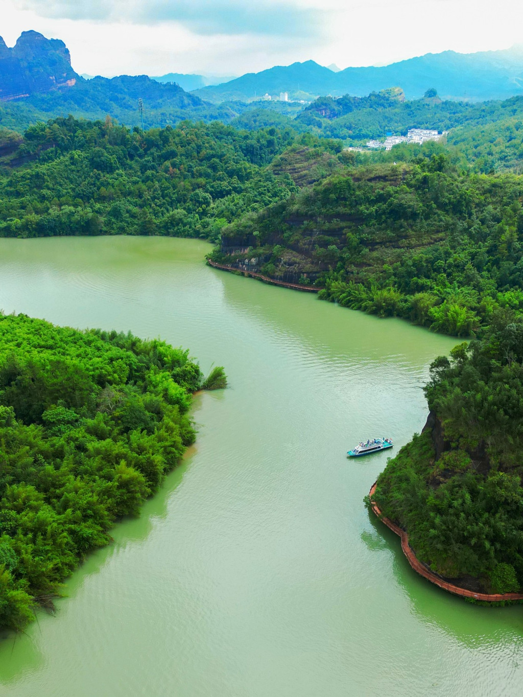 另外,乘船游览也是赏丹霞地貌的绝佳方式。锦江沿着丹霞山的谷地蜿蜒流淌,它给丹霞山增添了灵动气息,一个小时左右的游船,两岸风光尽收眼底。
