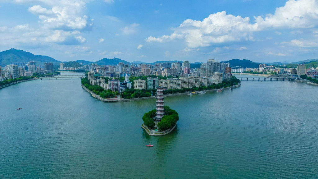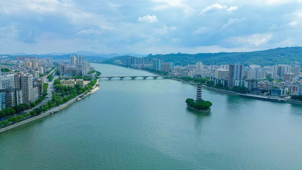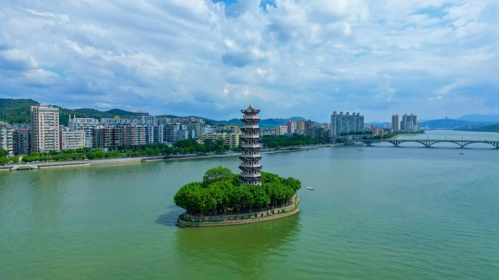 韶关 由 三江 六岸组成,浈江、武江在这里交汇成为北江,而在 三江 交汇处,有一座耸立于水面上的九层古塔,名为“通天塔”,距今已有五百多年的历史,为曲江旧“二十四景”之一。