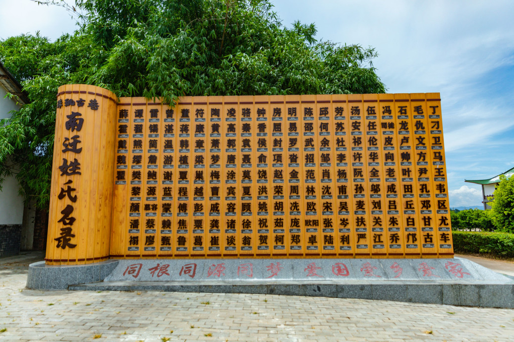 珠玑巷是中华民族拓展 南疆 的中转地,从珠玑巷迁播出去的姓氏至今已达180多个,其后裔繁衍达7000多万人,遍布海内外。因此,巷口有南迁姓氏名录,下面写着:同根同源同梦,爱国爱乡爱家。