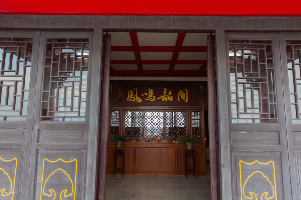 韶阳楼共五层,取金木水火土五行之意,为 中国 传统哲学构成世界精华元素之精蕴,楼主体为红色,古朴典雅,相当大气。
