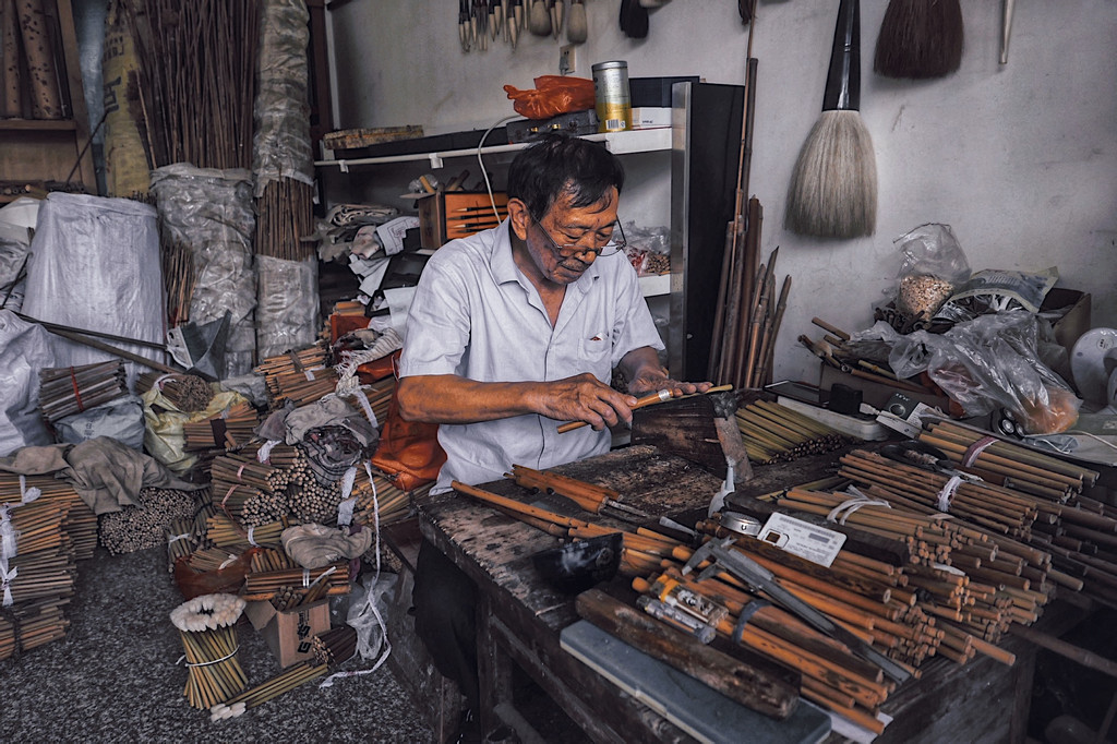 那里有很多制作湖笔的老师傅,还可以体验湖笔的制作过程