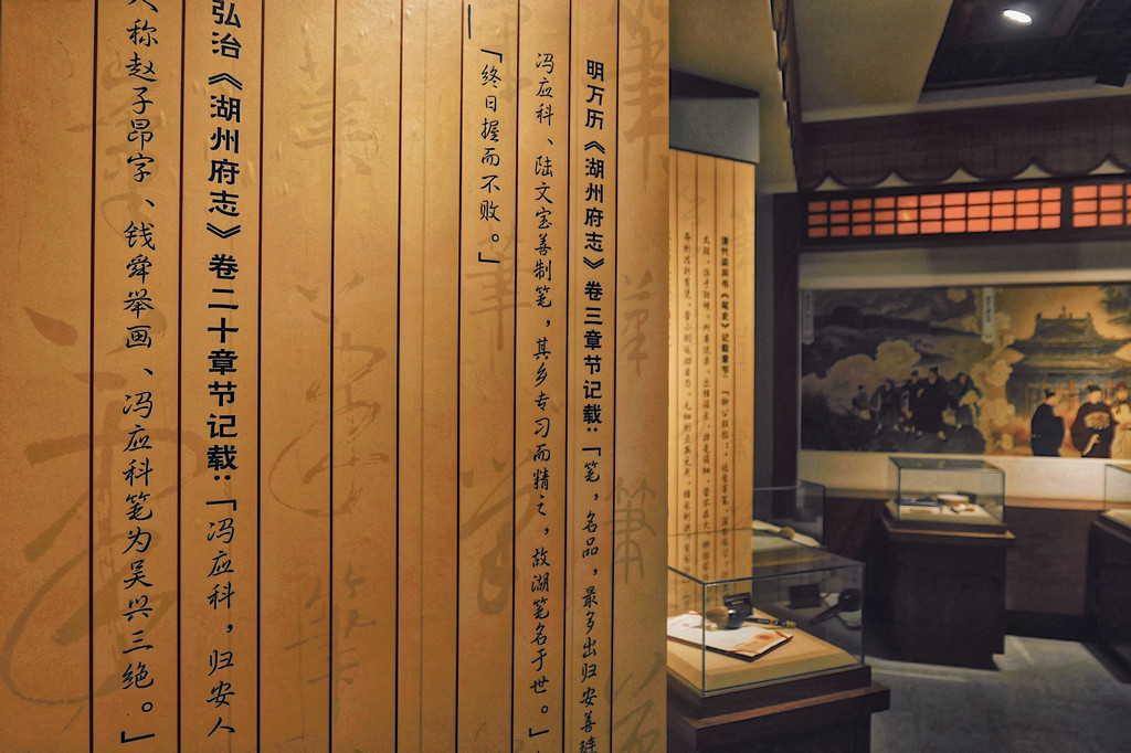 湖笔的笔料也有3百多个品种,文化馆的旁边有一条和湖笔息息相关的街道