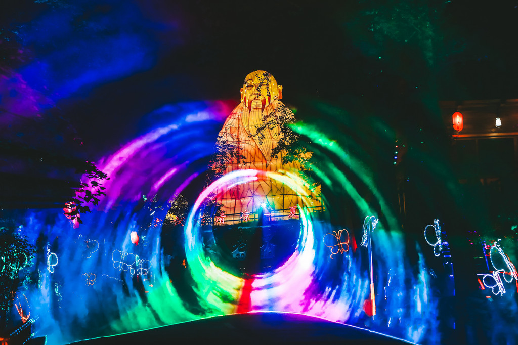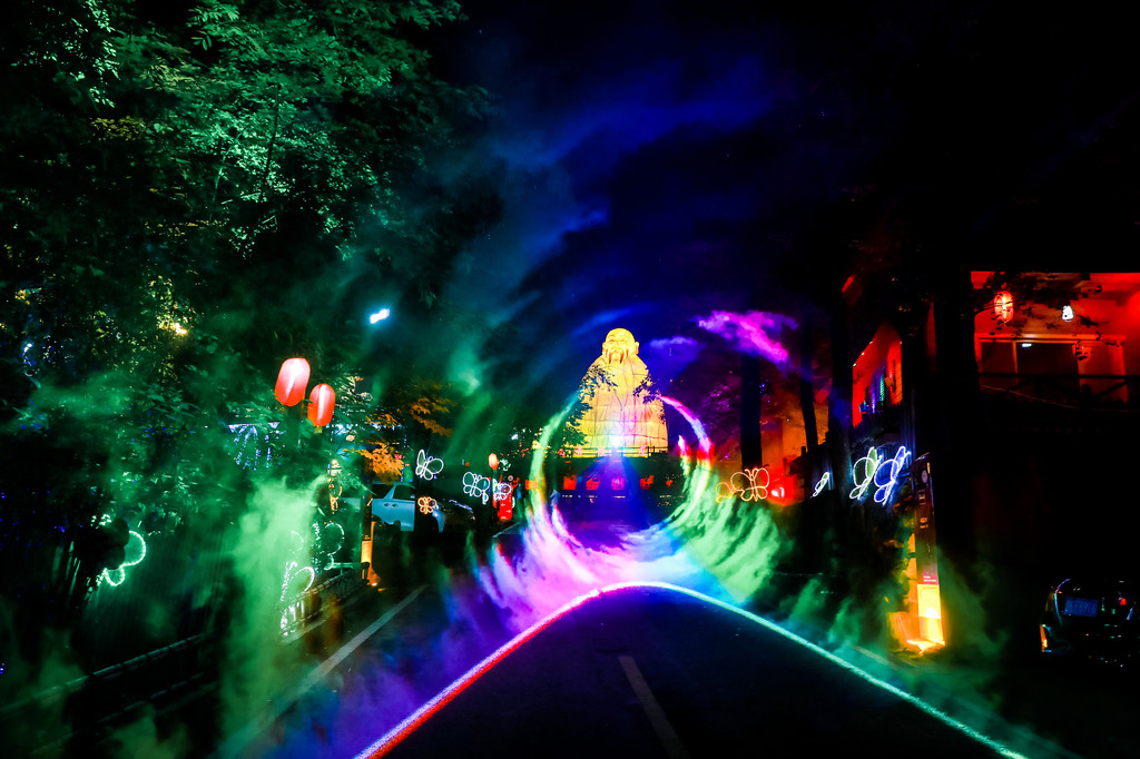 夜游老界岭,五彩斑斓的灯光秀梦幻无比