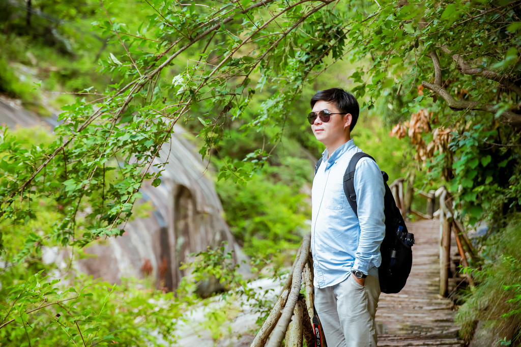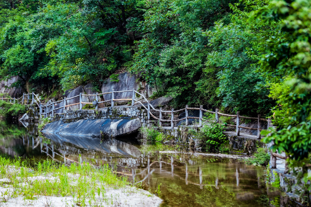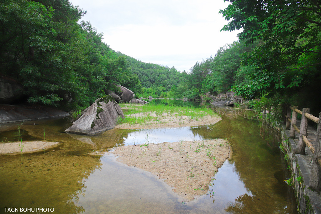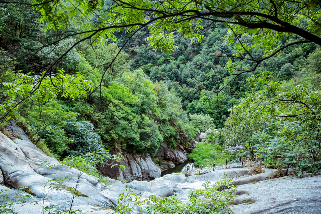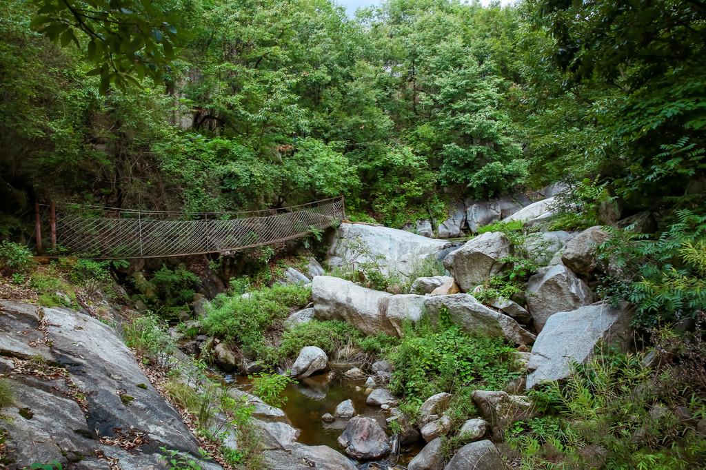 全程有5公里长,走路的话大约要走近2小时才能走完全程,过了一座又一座桥,傍溪而上,两边山势渐缓,满眼葱绿的原始森林,顺着峡谷间河流而上,一路上看到各种石头,瀑布,小桥流水,绿色植物郁郁葱葱,沿着峡谷往前走去,没过一会又出现一座小桥,沿着小桥过去再往前走,溪水潺潺,知了叫个不停。整个山林间就像是一个欢乐的乐园。