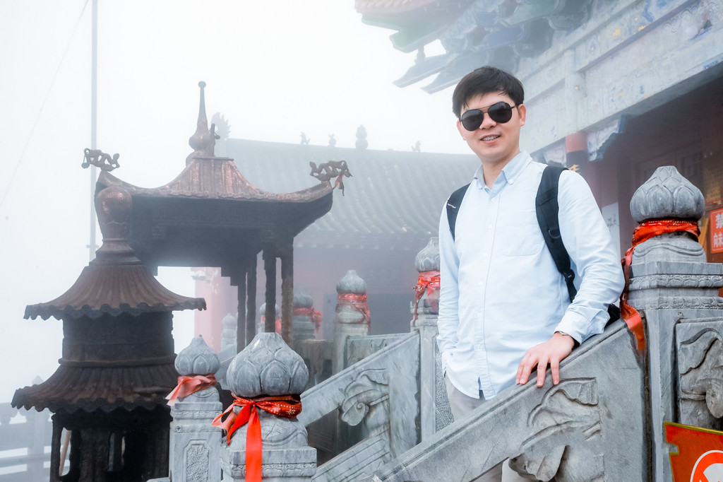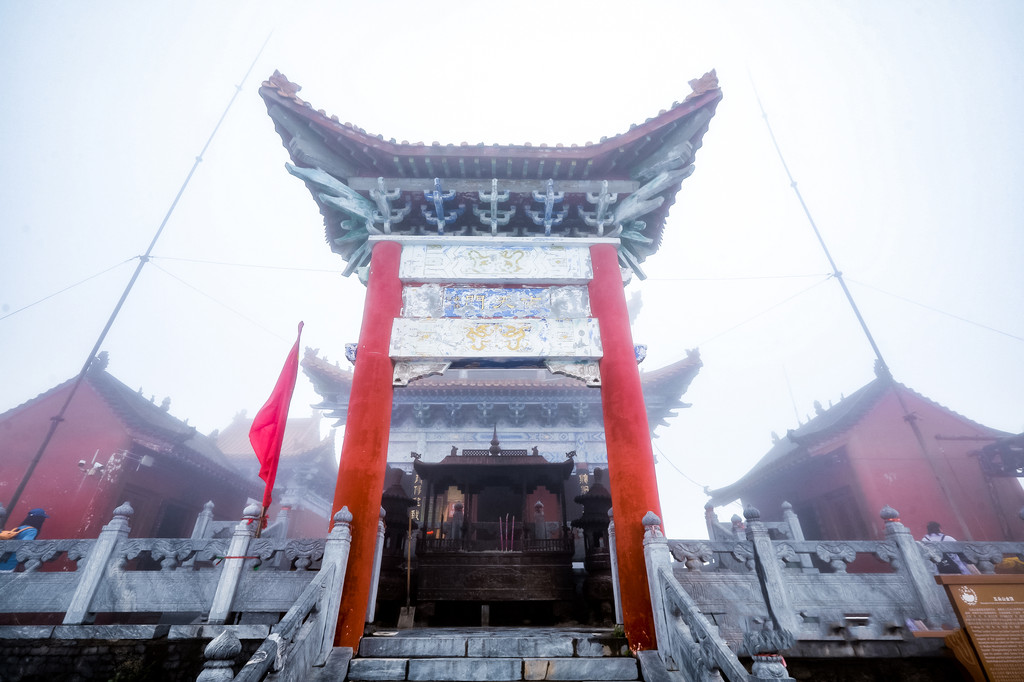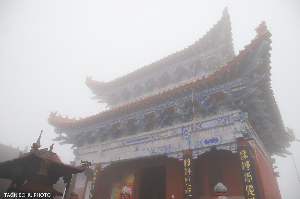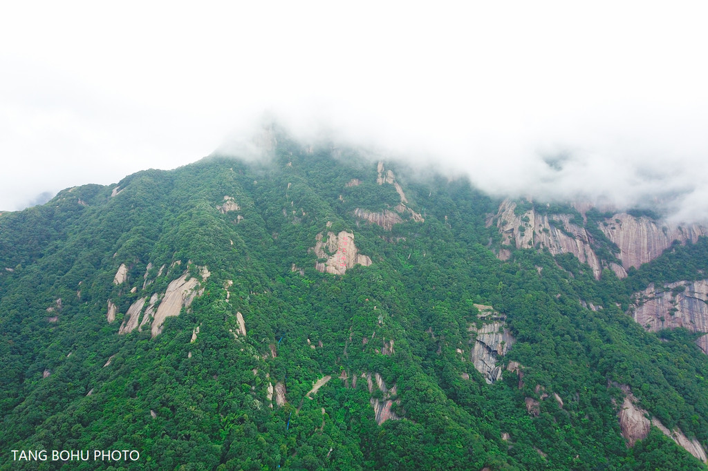 今天上山顶看到的烟雾是我见过最多的一次了,到了山顶基本上都是白茫茫的一片烟雾,整个五朵山被烟雾围绕着,还下着小雨,风还有点大,在俯瞰山下的景色时都要等云雾快速的散去才能看清山脚下的景色。