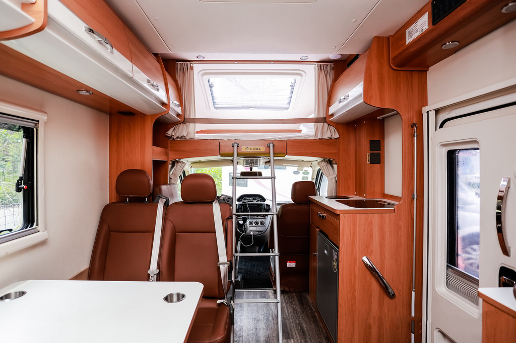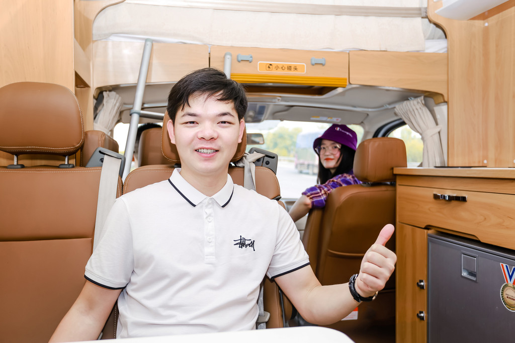 车外是美丽的风景,车内就是一个温馨的家,有床,有桌子,有洗手间,有电视,有冰箱,有空调,有电,有水。就像是把家搬到车上一样,有三张床,六个座位,如果是一家人出行的话,我想一辆房车也是够用了。