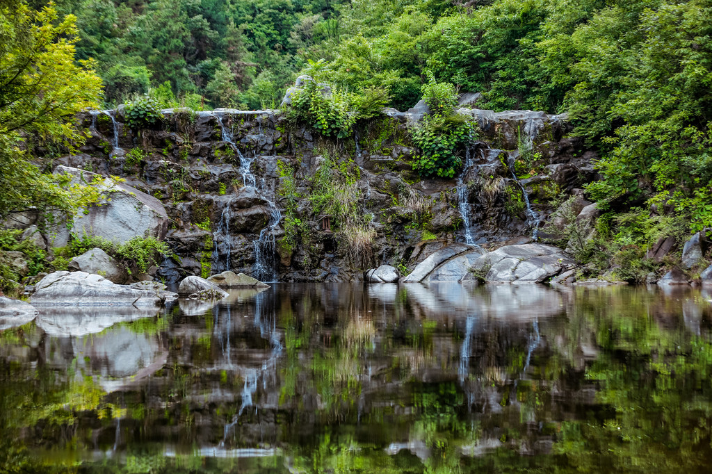 青山秀水藏古事,奇绝幽秘暴瀑峡。暴瀑峡位于五朵山南麓,全长5公里,区内既有郁郁葱葱的生态林地,又有跌宕奔流的瀑潭溪涧。走在蜿蜒曲折的山路上,沿着小溪边走去,峡谷两边郁郁葱葱的树木,有好几处从小溪流下来的瀑布,就像一群四蹄生风的白马如潮水般的涌来。再沿着山石小径拾阶而上,来到一湾碧波荡漾的秀水翠屏湖,巍巍青山倒映,湖水清且涟漪,美丽的风景让我们心旷神怡。一路上有美丽飞瀑和幽静潭水,瀑潭连绵,水流潺潺,这里真是夏天清凉的打卡地。