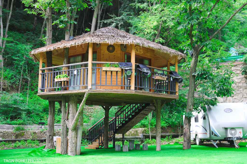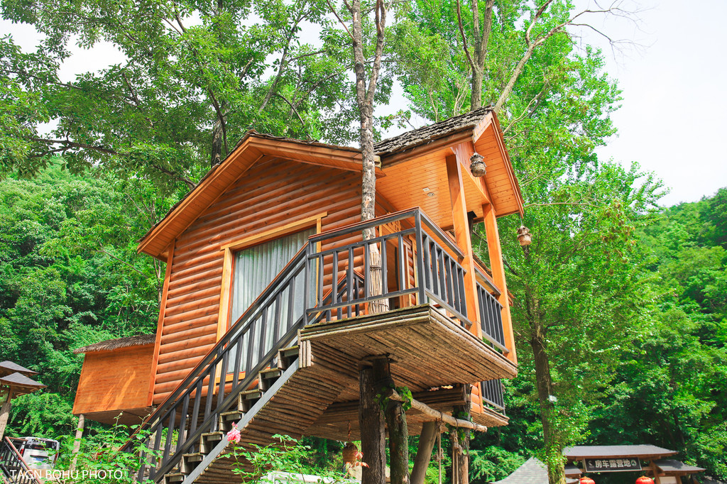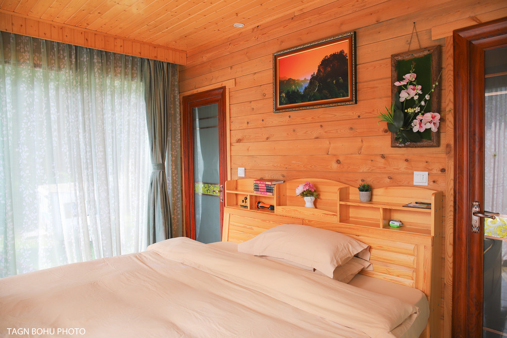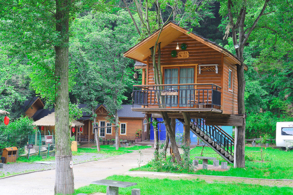 树屋也是比较特色的,建在房车的旁边,是建在树上的,并不是很高,多外观看上去和普通的木房子差不多,走上梯子推开房间的大门,里面有一张大床,内部装饰都是用木板的,有洗手间,沐浴间和普通的房间差不多。想想晚上住在木屋里有感受,听着森林里虫子的叫声,慢慢入睡是有多么的浪漫呀。不过一到晚上真的还是挺冷的哦。