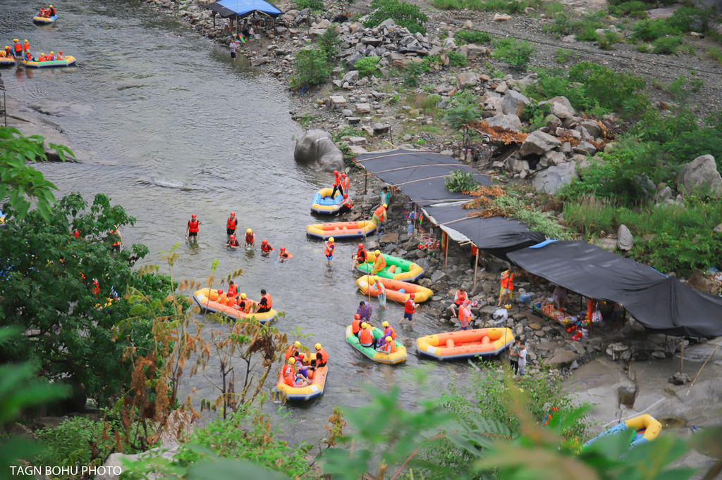 虽然当天下着小雨,但对于一心念念不忘的峡谷漂流给安排上了,坐上皮筏艇,到了平缓区,漂到了终点,不由感叹,在激流处冲浪,在跌落中受挫,在旋转中迷惑,在碰撞中拼搏,在平静中悠闲,人生旅途可以在漂流中观感。漂流是不是应该就是这样,如果经验丰富,操控自如,就不会拥有这般的心境,一如我们的皮筏艇,时而碰岩边、时而打回转、时而向前冲,时而岸中搁浅,才能感受到更多的乐趣。