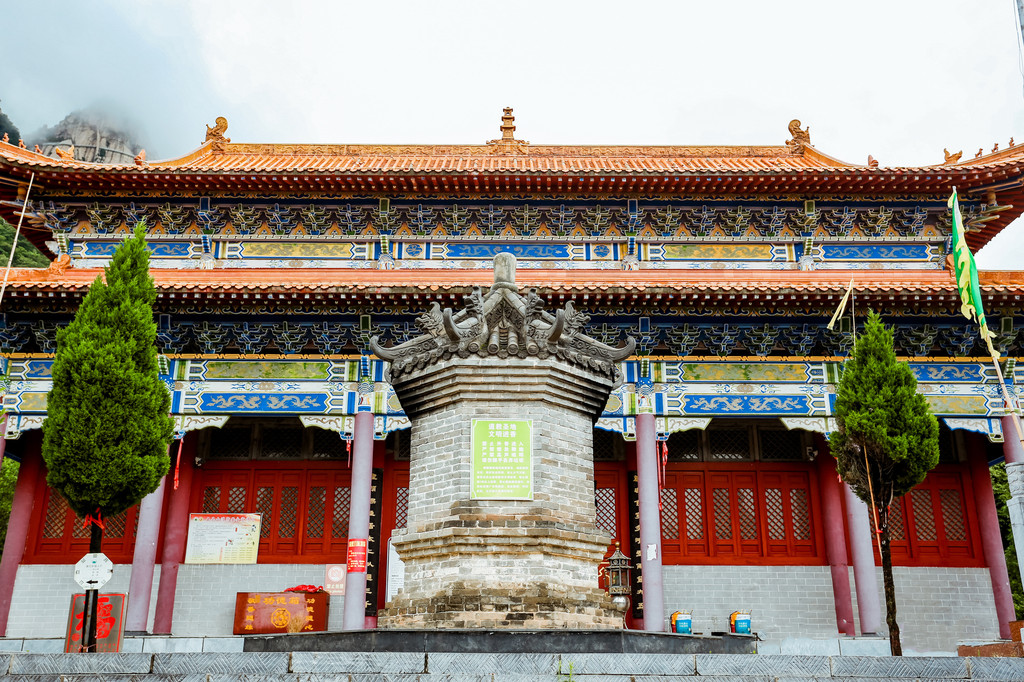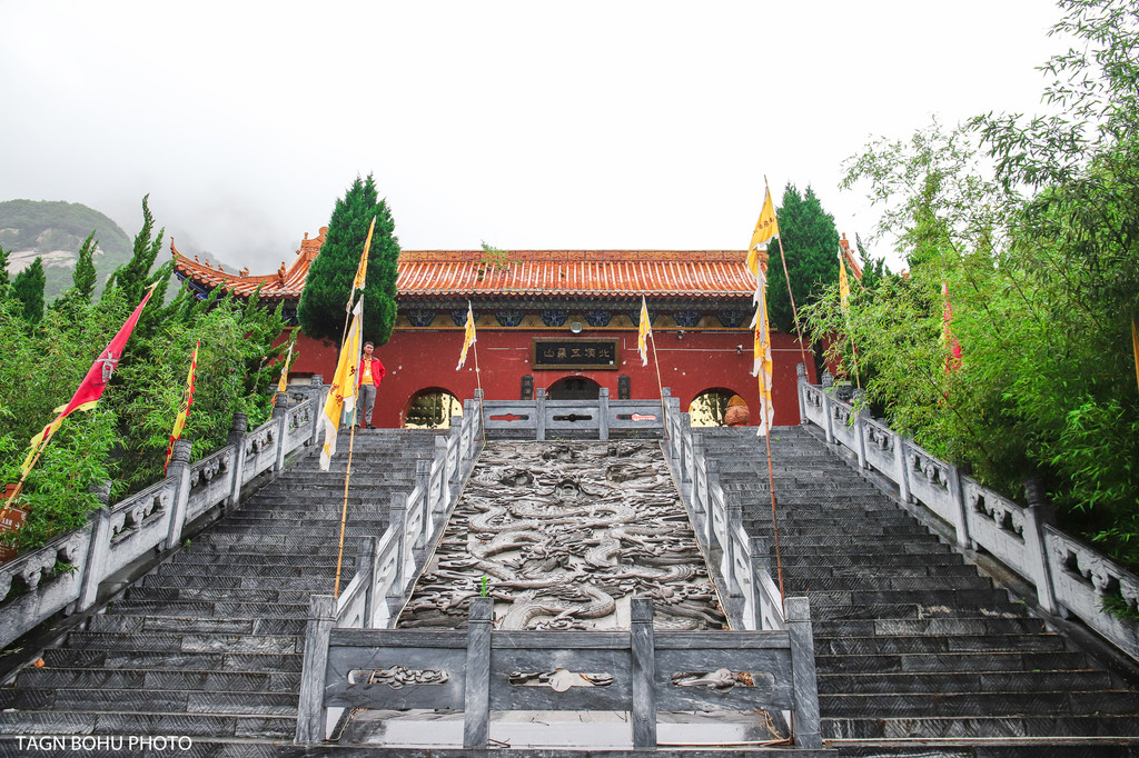 沿着酒店旁边的小路走上去,一路上绿色植物郁郁葱葱,沿着台阶慢慢走上去,先要经过一座玉皇庙,整个庙被周围的森林所覆盖,到处都是郁郁葱葱的森林,空气清新,进去庙后再往上走一段路才来到了坐缆车的地方,建议要爬五朵山的话还是坐缆车上去比较轻松一点,要不然走路上去花的时间很长,而且脚走到酸呀。就前面坐缆车前走的这段路就感受脚就有点酸了。当然了,要是想走山路上去也可以,就是时间会比较久,而且很累。特别是在大夏天走山路的情况下肯定是满身大汗呀。