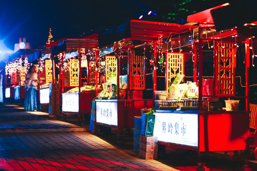 晚上的老界岭五彩斑斓的灯光秀吸引了好多游客前来观看,白天看不到的灯光景色在晚上梦幻的灯光秀就可以看到。随着夜幕降临华灯初上,在老界岭开始上演着大型的灯光秀,在观赏灯光秀的同时还能品尝到当地特色的美食,有一个界岭集市有很多美食值得去品尝一下呀。