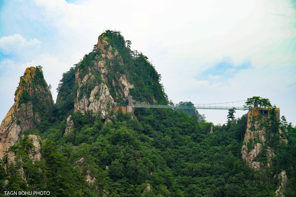 中午到达老界岭,第一站就是爬老界岭了,上去先从从缆车低前往山顶,一路中山势陡峭,沟壑纵横,峰峦迭嶂,气势磅礴。阴时云雾缭绕,时隐时现,其景壮观异常。当我们走到山顶时被这里的景色深深吸引住,放眼望去一山连着一山,山峰连绵起伏,险峻又陡峭。不远处的透明玻璃桥建在两座山中间,看上去就感受有点惊险刺激,只可惜我们当时去的不是时候因前天一天下雨暂时不开放,要不然真的是想去体验一下。