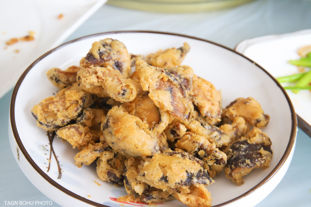 油炸的小鱼味道不错,整条小鱼被炸得酥酥脆脆的,连小刺都可以吃很香。第一次看到皮蛋凉伴菜的,这个味道不太喜欢呀。