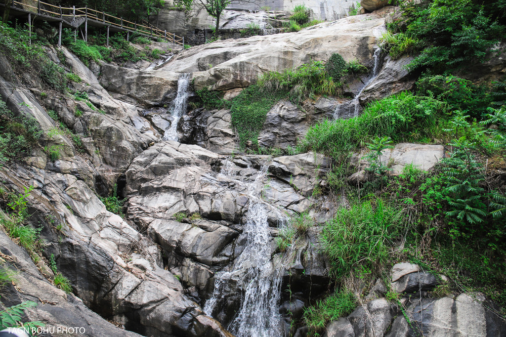 小桥流水,从远处观看时,只见碧绿的山峦中,瀑布似一条白色的细线,从天而降,无声无息,挂在山中,仿佛是一幅静止的山水画。而从近处观看时,只见瀑布如一条巨龙,从陡峭的岩壁上,飞流而下,咆哮着奔腾而去,声震如雷。无数飞溅的水珠在阳光的反射下,五颜六色,璀璨艳丽,犹如珍珠和玛瑙般光彩夺目,漂亮极了。更如来到了仙境一样。