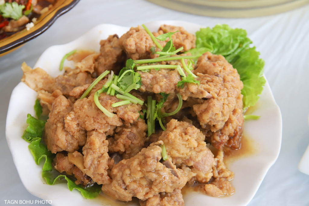 提到河南美食大家第一个想起的就是烩面了,“中国十大最好吃的面”之一,有着4000年的历史。是一种荤、素、汤、菜、饭聚而有之的传统风味小吃,以味道鲜美,经济实惠,享誉中原,遍及全国。来到河南南阳才知道原来这里也是喜欢吃辣的,那么辣子鸡就是其中的一个代表菜了。辣子鸡是南阳的一道地方著名小吃,产自南召,辣子鸡作为一种地方品牌名吃,已被列为豫菜菜系名录之一。白土岗辣子鸡作为一种地方特色名吃,从上世纪七十年代末,开始在南召发展延续而名扬全国各地。