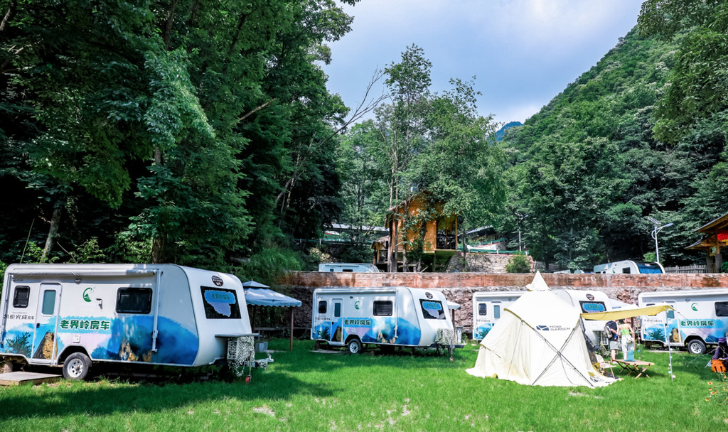上下两个区域,房车的房型大致相同,木屋的外观都各具特色。