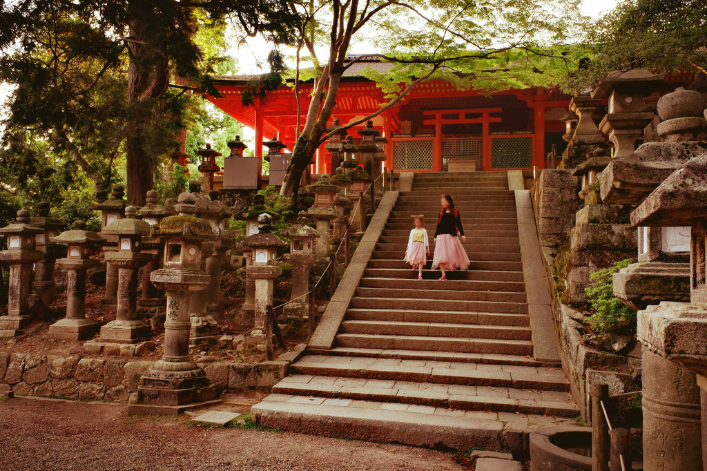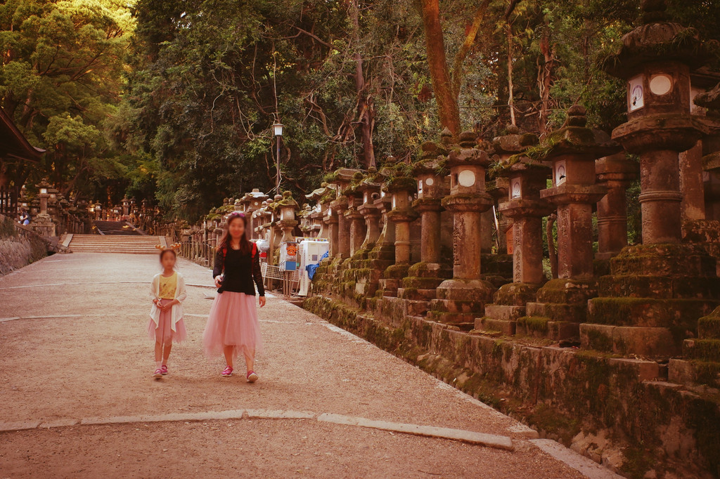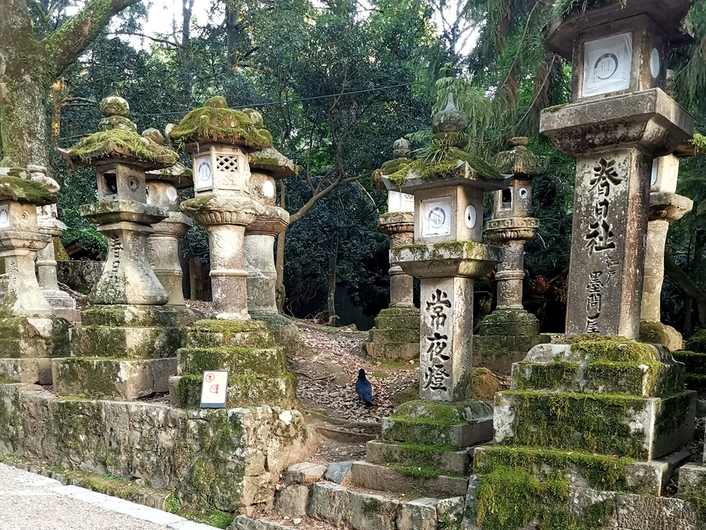 奈良时代起,日本在修建寺院时就会建造石灯笼来保护供奉佛的灯火。春日大社参道很长,两旁的石灯笼数量非常瞩目,密密麻麻地排列在道路两旁,灯笼顶覆盖着斑驳的青苔,显出了岁月的痕迹。