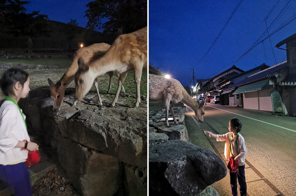 回酒店的路上,总是会有邂逅,一块鹿仙贝的见面礼,还是不能免的。