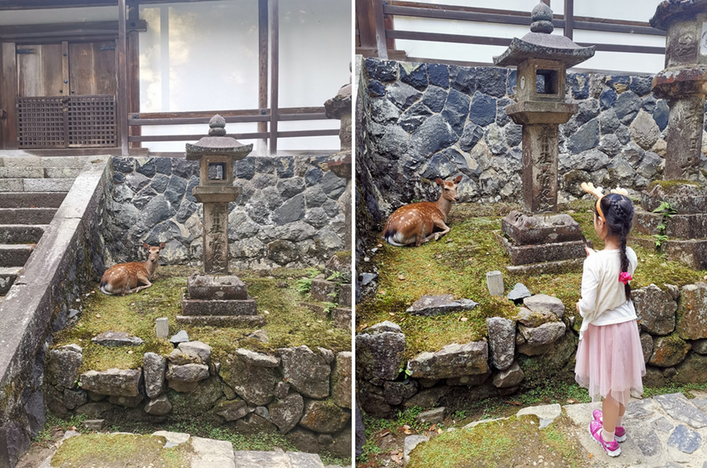 入驻的酒店,仍旧是去年到奈良的民宿,就在若草山的山麓位置,门口就经常有小鹿流连打探。