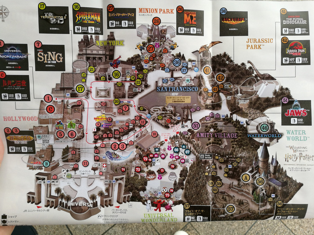 进了环球影城,门口是标志性的地球标志,就好比任何一个迪斯尼都有的沃特迪斯尼牵手米老师做为迪斯尼一样。这个地球标识,在洛杉矶环球影城、新加坡环球影城,都是一样的。