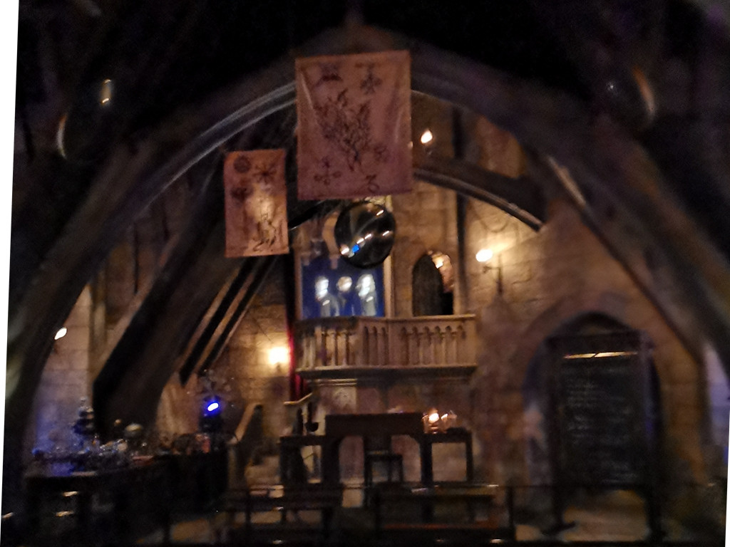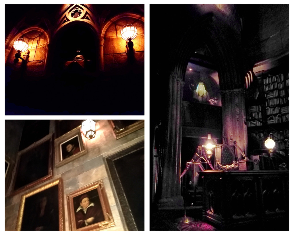 城堡里面,则是电影中经典的桥段和场景。灯光稍暗,又不能开闪光灯,照片不多。至于著名的哈利波特骑扫帚飞行的项目,提前已经要求把手机放在稳妥的地方,避免游戏中掉落,所以根本没有办法照相。