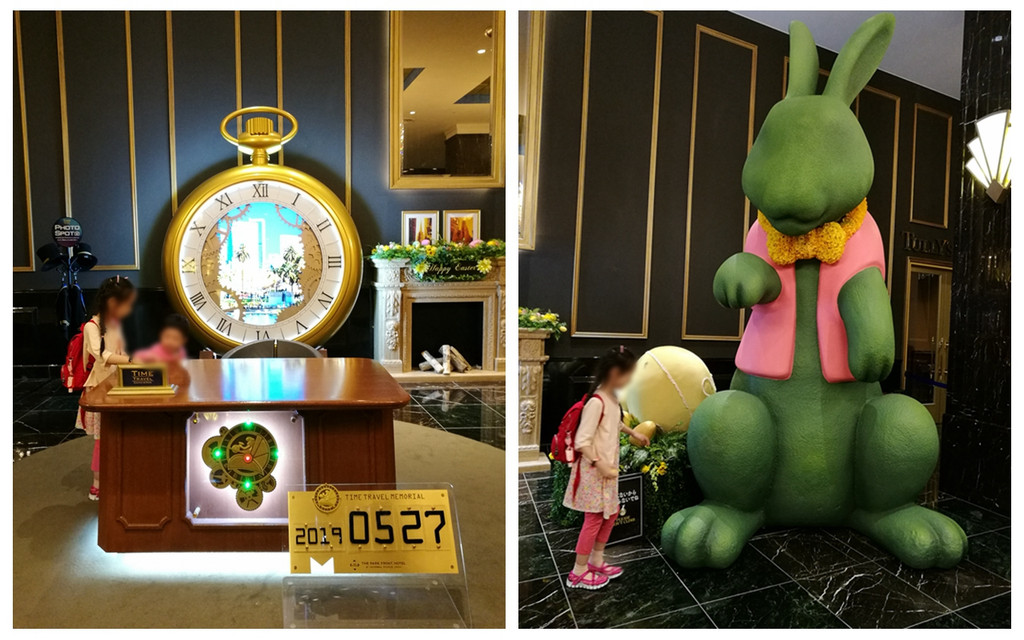 在大人办理CHICK IN 的间隙,孩子们小游戏玩的很放松。大厅有一个类似于时间穿越的钟表,可以在几个备选中选择穿越的时间和地点。