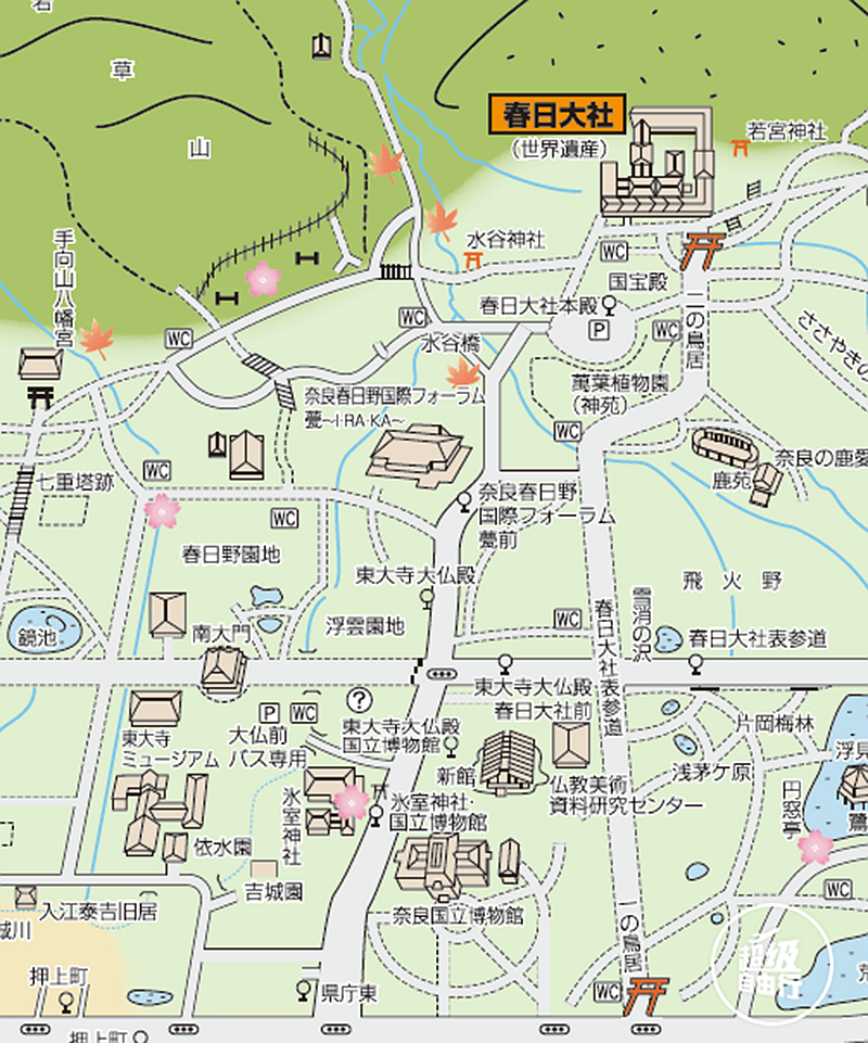 春日大社为守护平城京及祈祷国家繁荣而建造,列入联合国科教文组织的《世界遗产名录》。是日本全国各处的春日大社的总部, 与伊势神宫、石清水八幡宫一起被称为日本的三大神社。春日山作为春日大社的神山,千年以来都被禁止砍伐,原始林得以保护。