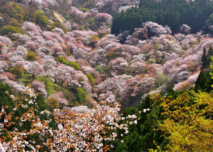 稍微离开市中心来到郊外, 明日香村 的石舞台古坟、吉野等各地也是有名的樱花景点。吉野山更是整座山成为有名的樱花景点,山脚至山顶,从4月上旬到中旬接连绽放花朵。