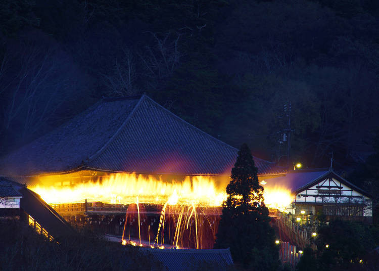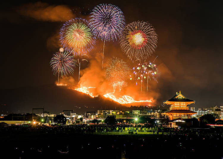 一月的第4个週六, 奈良 会举办被称为冬天风物诗的活动“烧若草山”。在冬天的夜晚剧烈的火焰燃烧著整座山。
