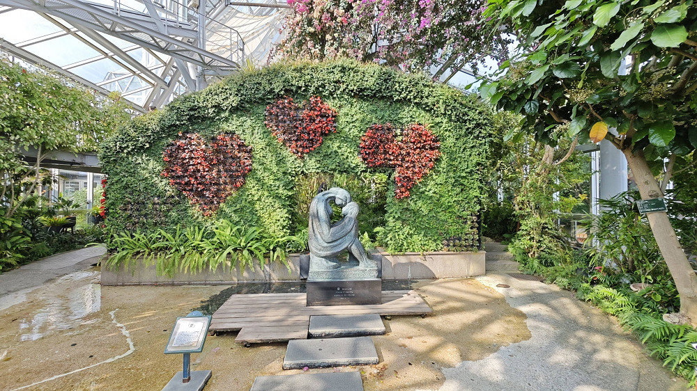 从山顶沿山路向山下漫步,观赏沿途的各主题花卉展。