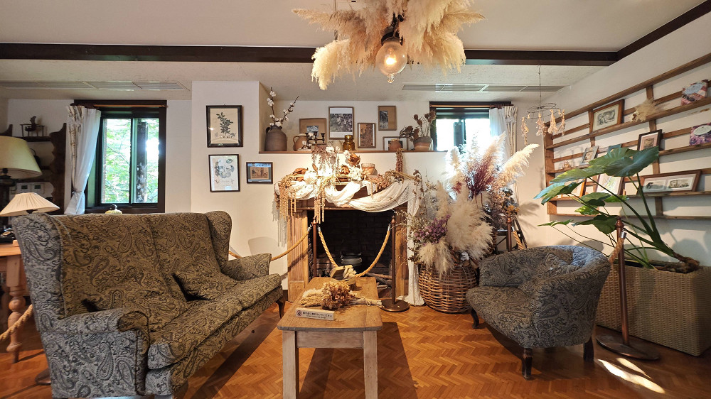 洋馆长屋由两座对称的房屋组成,一楼展示的是新艺术运动时期的作品,许多家具都是与法国相关的收藏品。二楼则被改造成了艺廊空间,以四季为主题,充满季节感的华丽布置让人目不暇接。