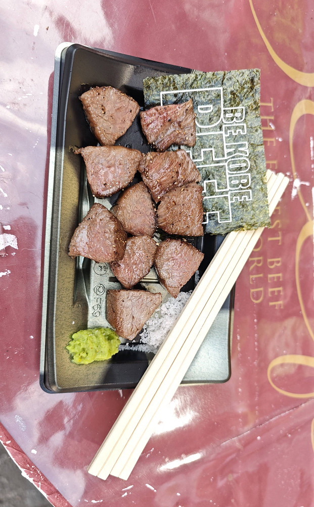 来神户当然要尝尝神乎其神的神户牛肉啦,牛肉的不同部位价格也不同噢,尝尝2800円60克的吧。