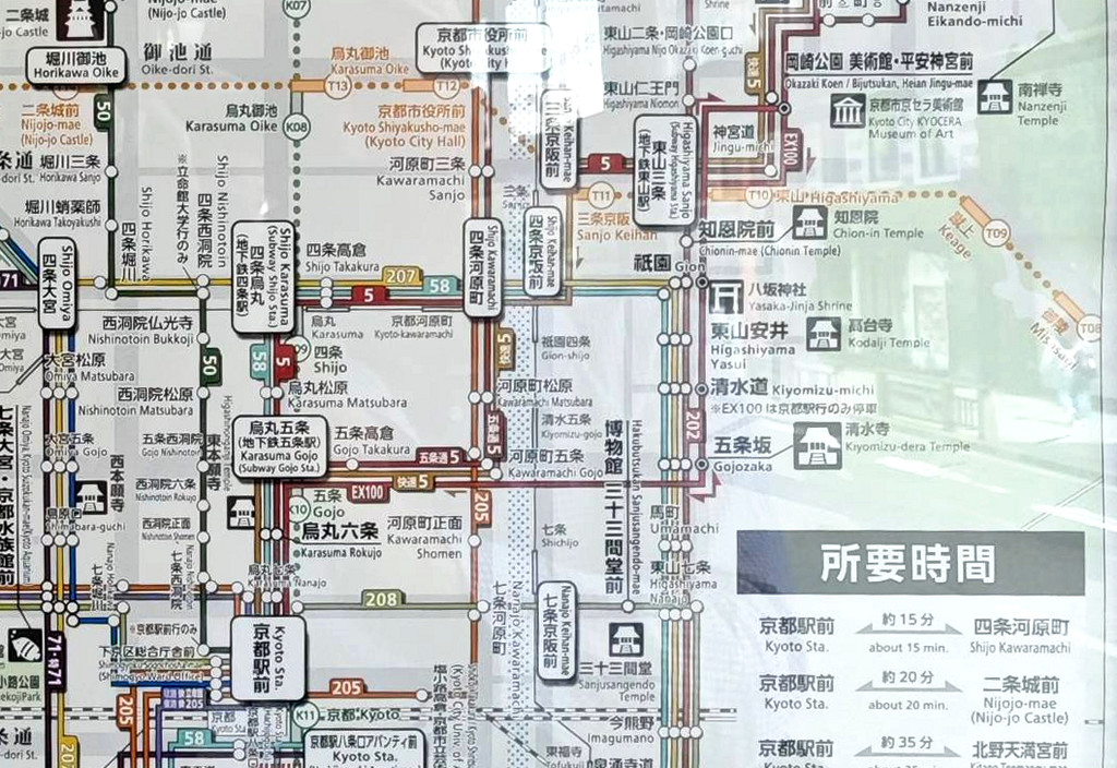 从酒店出门,走五六分钟到巴士站,乘坐207路,5个站,在清水道站(也可以多坐一站在清水寺站)下车。