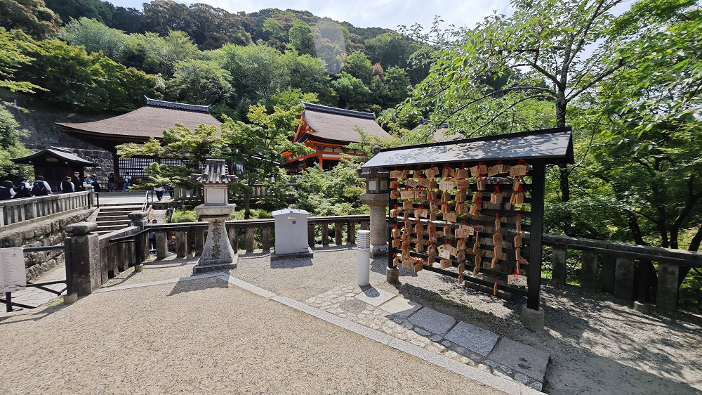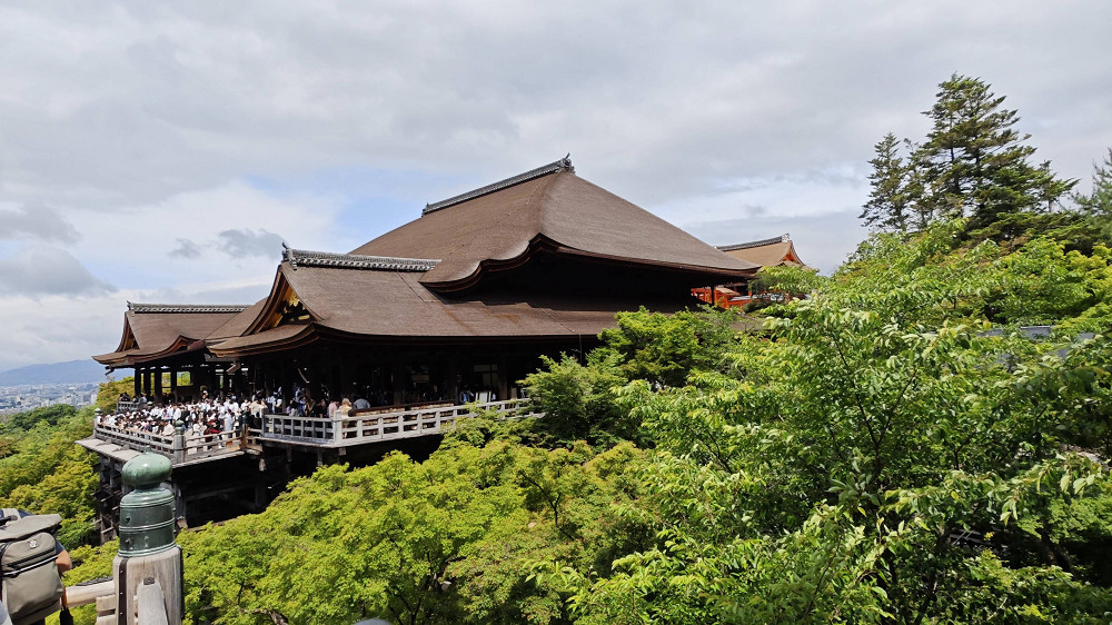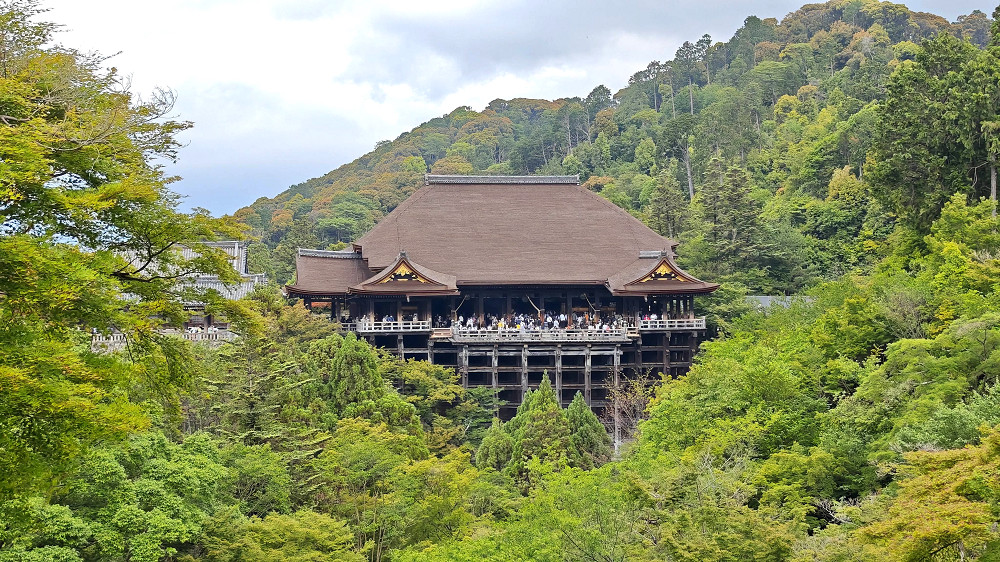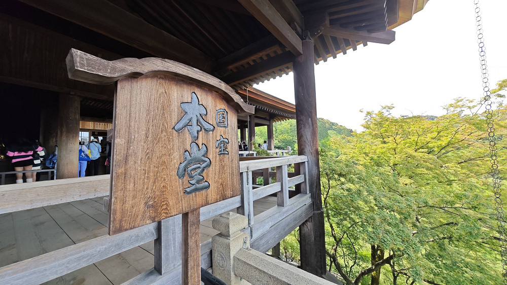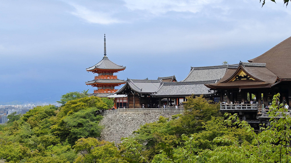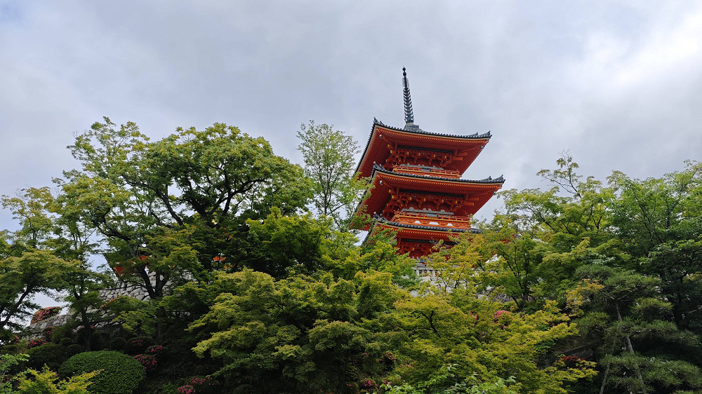 本堂前悬空的清水舞台是日本国宝级文物,四周绿树环抱,春季时樱花烂漫,是京都的赏樱名所之一,秋季时红枫飒爽,又是赏枫胜地。
