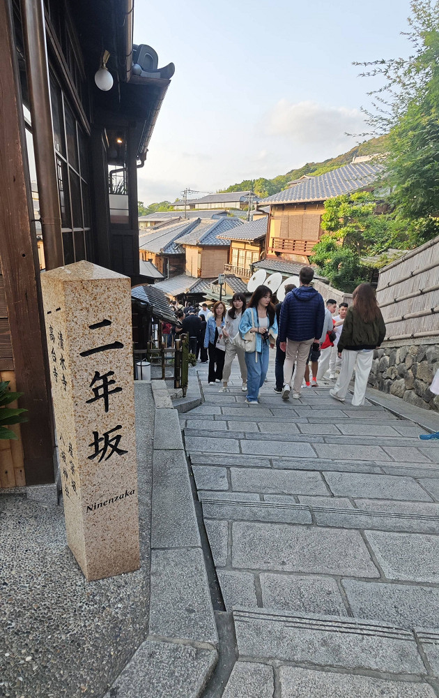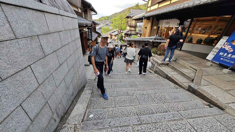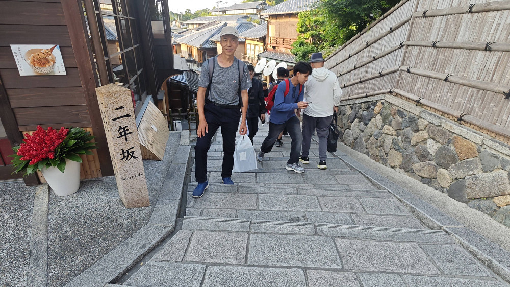 从三年坂入,往下走向二年坂。三年坂较陡,含46级石阶。