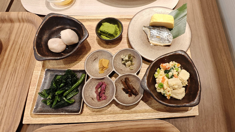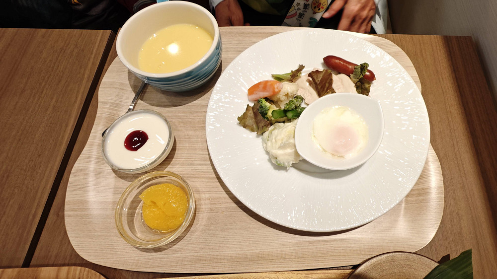 预订酒店时,房费不含早,昨天早出门,没尝到酒店的早餐,今天想尝尝,先到前台买早餐券,990円/人,早餐有洋式及和式,那就各来一份。