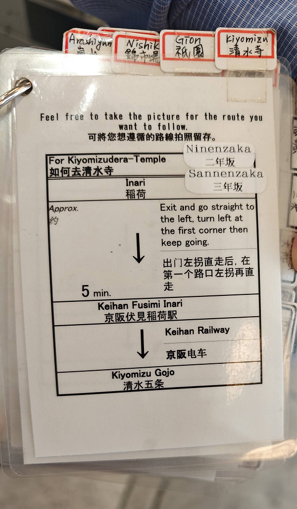 离开伏见稻荷大社时在咨询站了解如何去二年坂三年坂,工作人员给我这张图。
