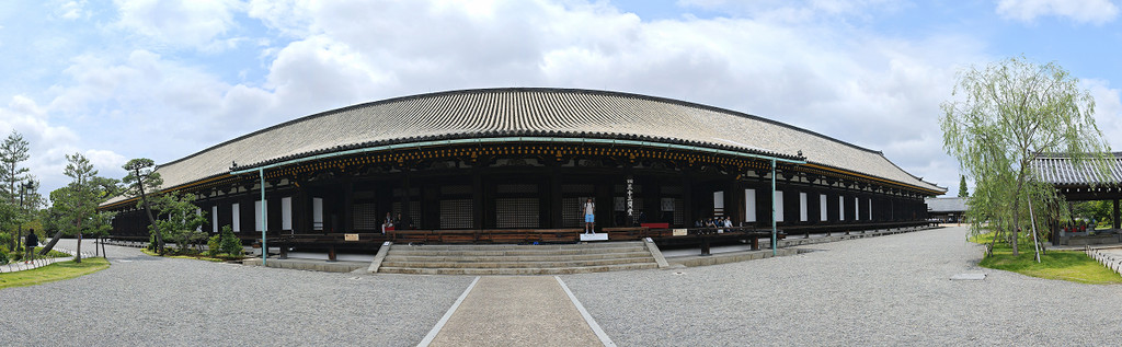堂进深17米,南北长120米,是日本最长的殿堂。堂正中供有一尊巨大的木造11面千手千眼观音坐像,高约3.3米,左右两侧各有500尊高约1.7米的金色观音立像。第1001尊观音立像位于堂正中巨佛的背面。观音群像前有28部众木造像。因主殿内禁止拍摄、录像,所以只能用眼看、用耳听。