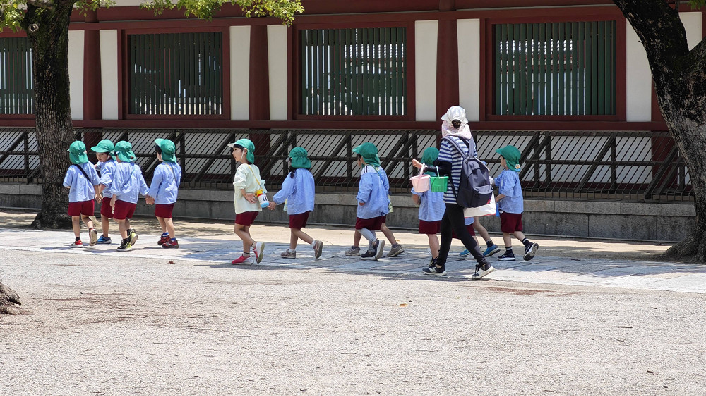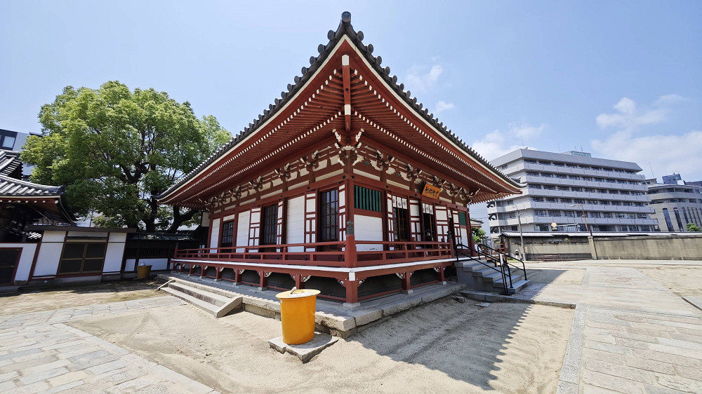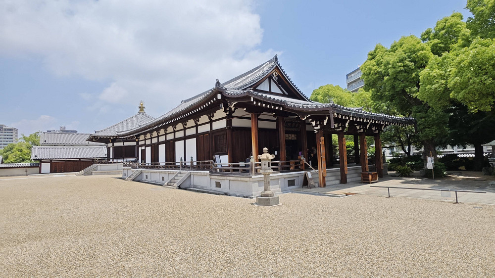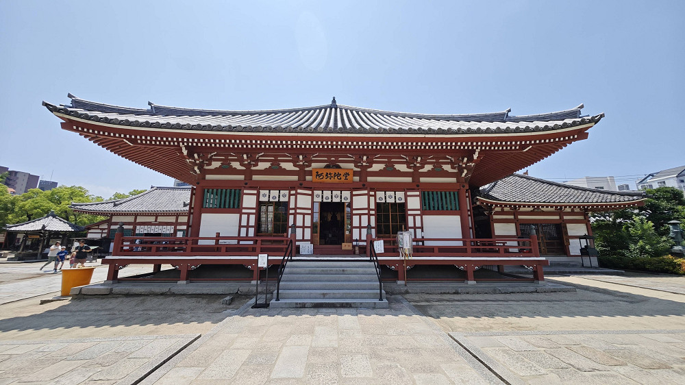 四天王寺是效仿中国寺院格局而建,南北向一线依次为中门、塔、金堂、讲堂,此后又陆续建起六时堂、太子堂、五智光院、元三大师堂和本坊等建筑。