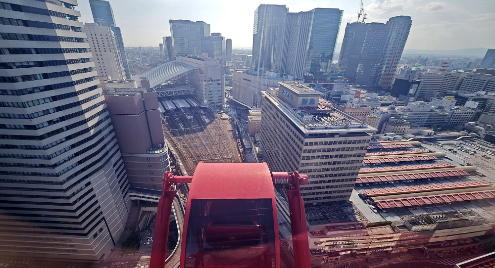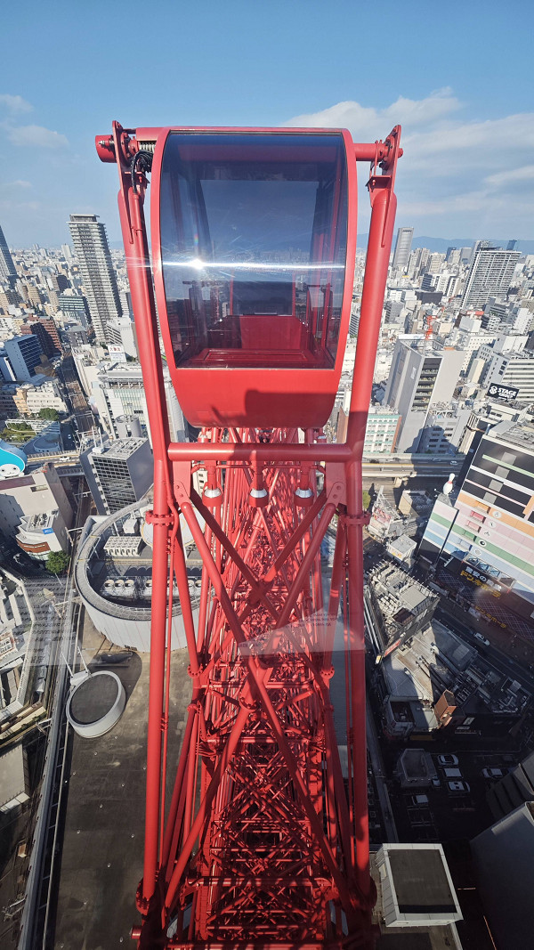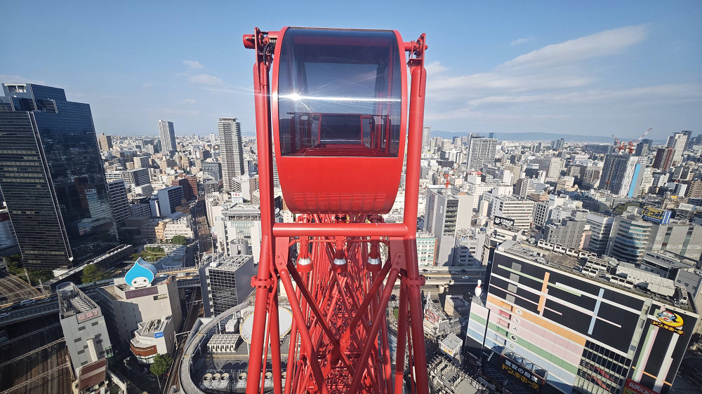 探索大阪梅田的红色摩天轮,世界上首个建在建筑物内的摩天轮。从HepFive大厦7楼出发,享受106米高的壮观景色,包括生驹山、安股堂和大阪湾。傍晚时分是最佳的观光时间。