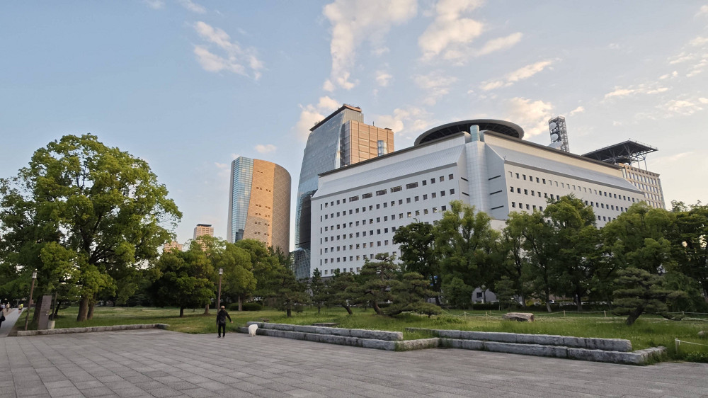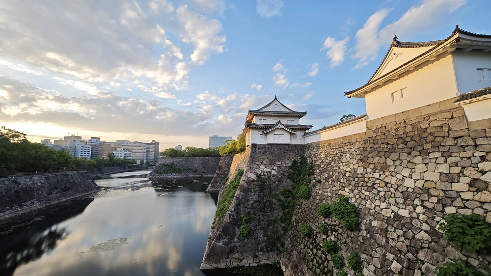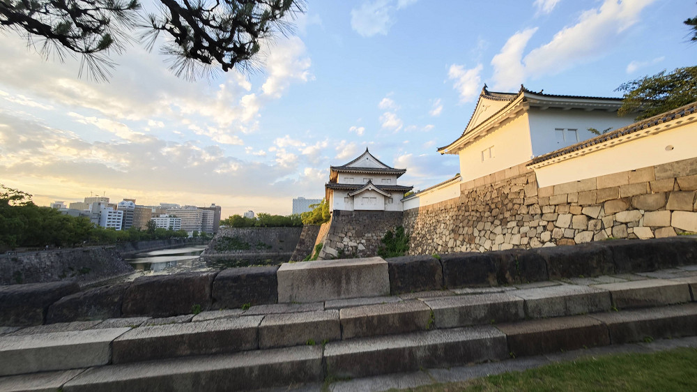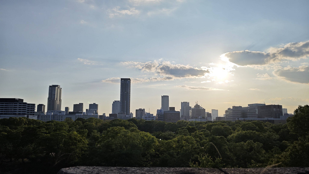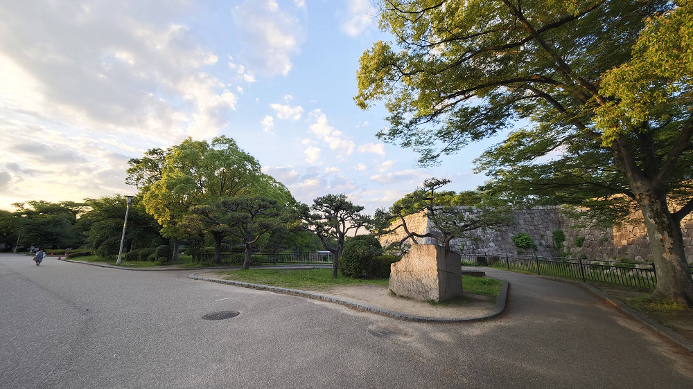 下午五点半,再次来到大阪城公园,从梅田站过来只需要四站,这次从公园的东北角(昨天从西南角进)进入。