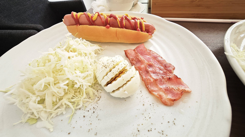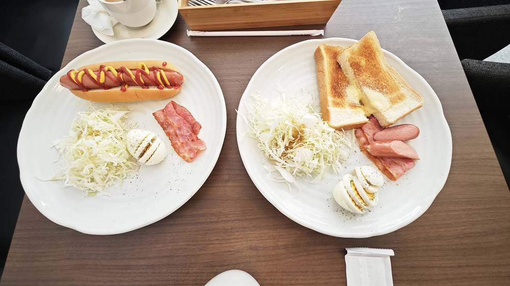 酒店早餐在大堂外的咖啡室吃,简餐650円/人。