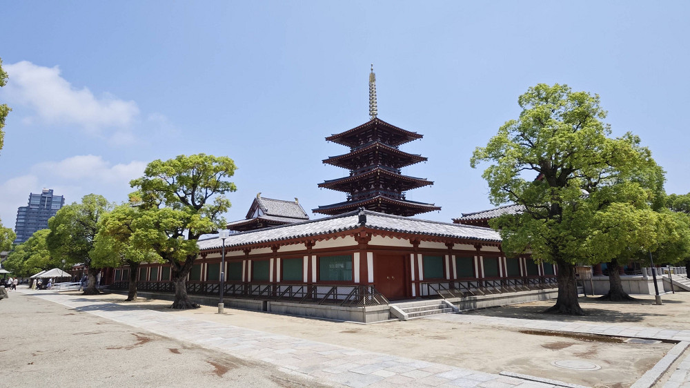 四天王寺是日本最早受政府行政管辖的寺庙。五重塔更为该寺的象征,而该寺一年四季都有大型的祭典举行。