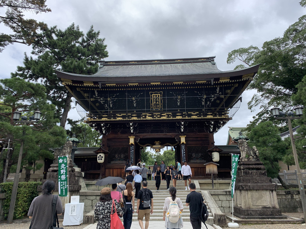 随后,我坐车前往位于京都府的北野天满宫景区。位于日本京都府京都市上京区的神社,和太宰府天满宫同为日本全国天满宫之总本社、天神信仰的中心。主祭神是学问之神菅原道真。