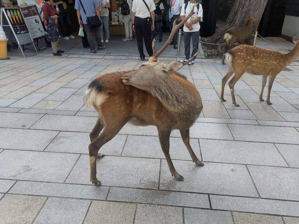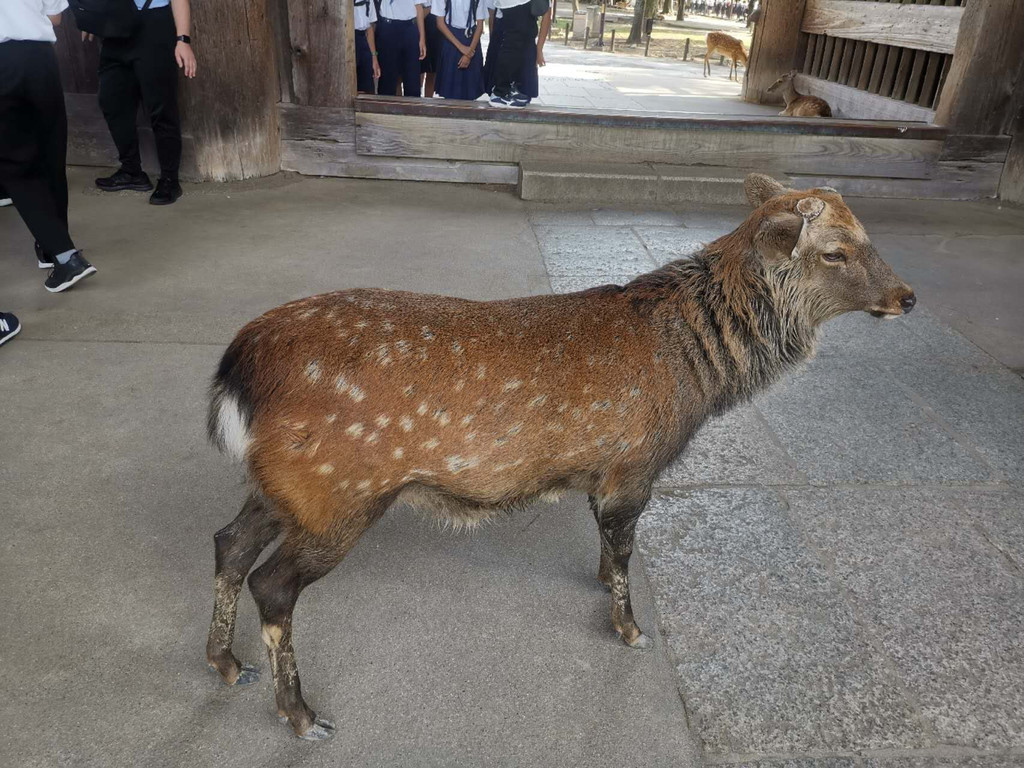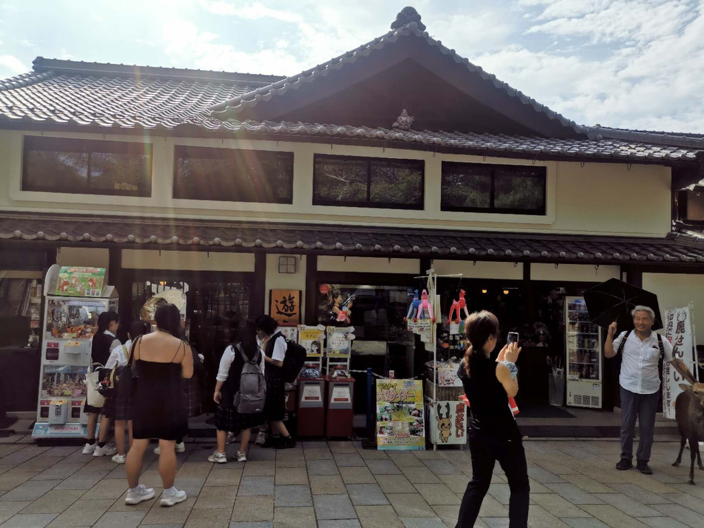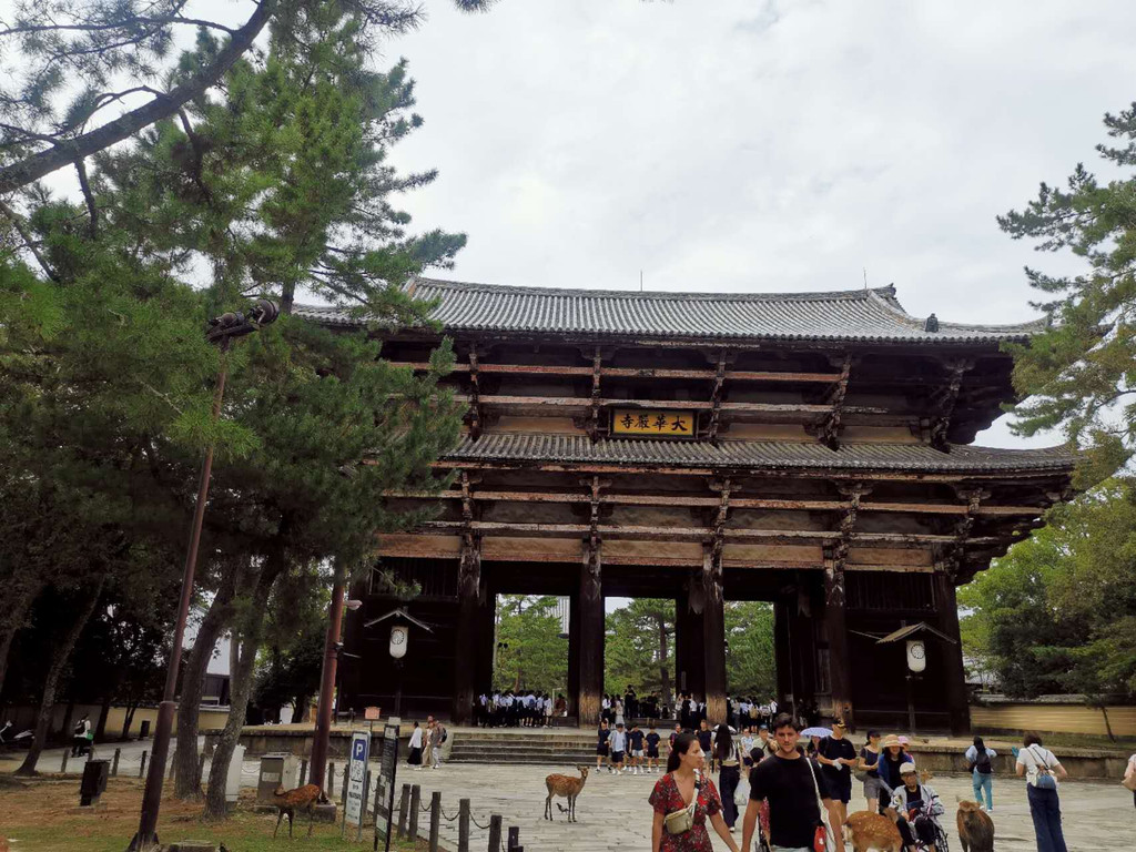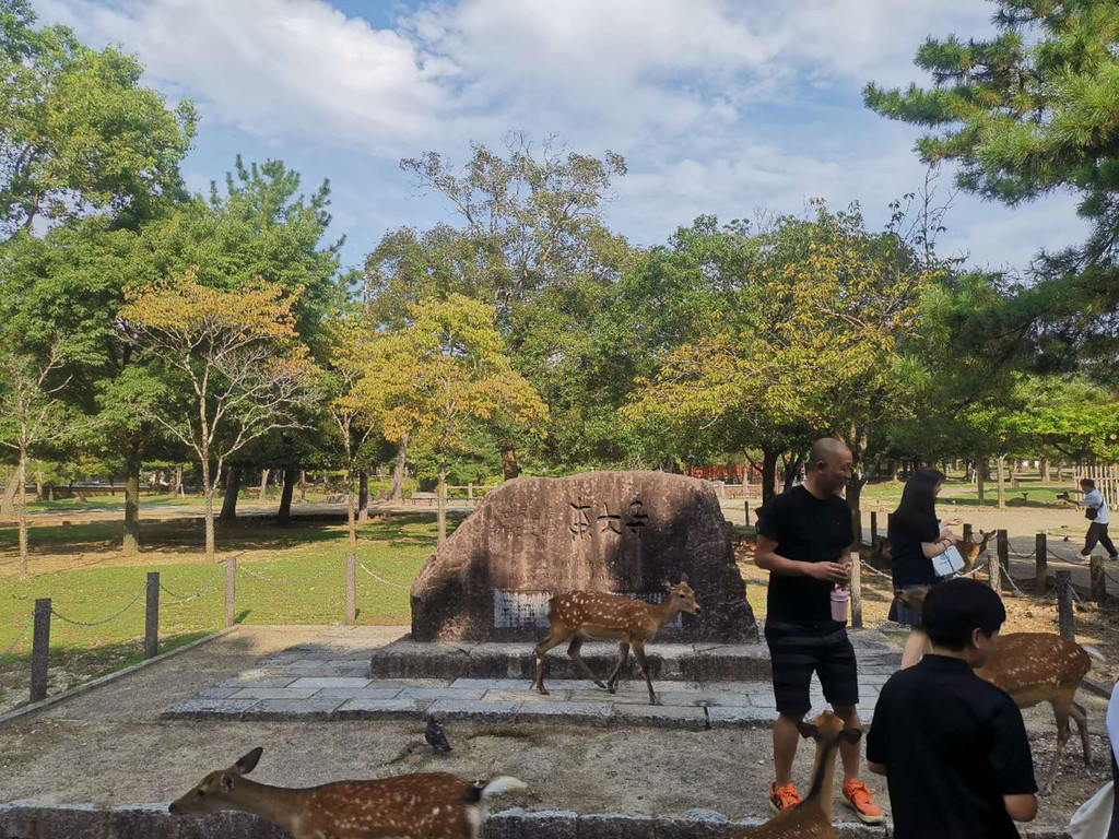 然后又前往了位于日本中部的奈良市,去游览了奈良公园和东大寺。奈良公园是日本现代公园的先驱之一,位于奈良市街的东边,东西长4公里、南北宽2公里,面积广阔,若草山、东大寺、春日大社、国立博物馆等奈良的名胜古迹大多在这里。在明治21年成为了县立公园。大正11年被指定为日本的国家名胜。而东大寺则是日本华严宗大本山,又称为大华严寺、金光明四天王护国寺等。位于平城京(奈良)东,是南都七大寺之一,距今约一千二百余年的历史,是当今全世界最大木造建筑。